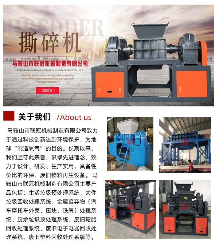 • 主營(yíng)產(chǎn)品:工業(yè)固廢撕碎機(jī),大件垃圾撕碎機(jī),餐廚余垃圾撕碎機(jī),金屬撕碎機(jī)